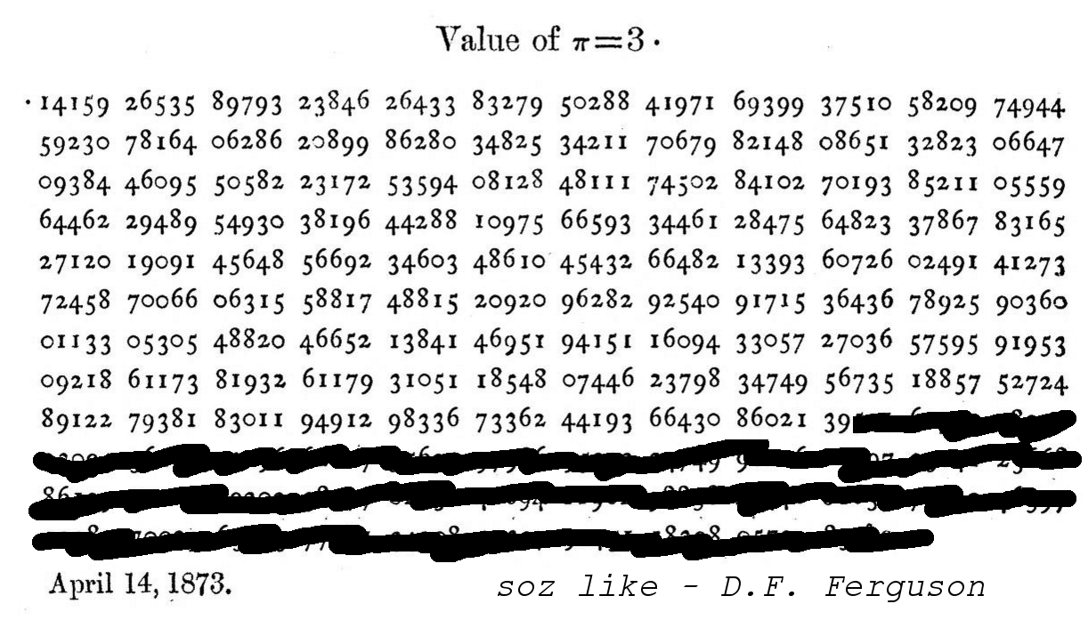 Since then, computers have gone on to compute a stupid number of decimal places of π.